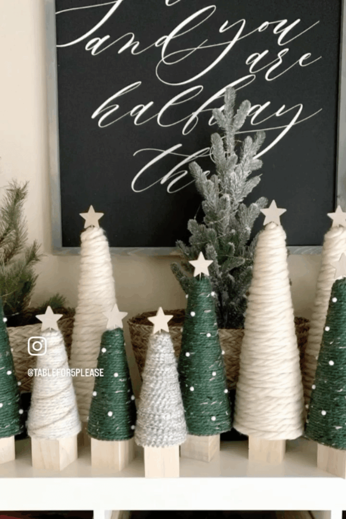 12. Wrap Yarn Around Mini Trees for a Soft, Scandinavian Holiday Display