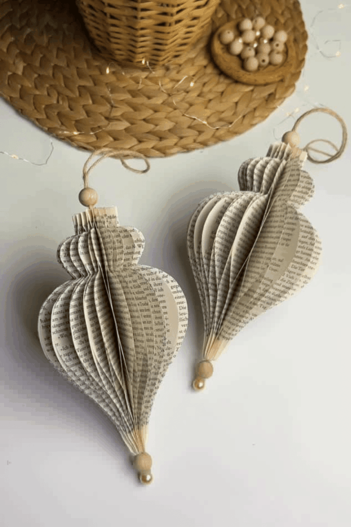 14. Turn Old Book Pages into Chic Vintage Christmas Baubles
