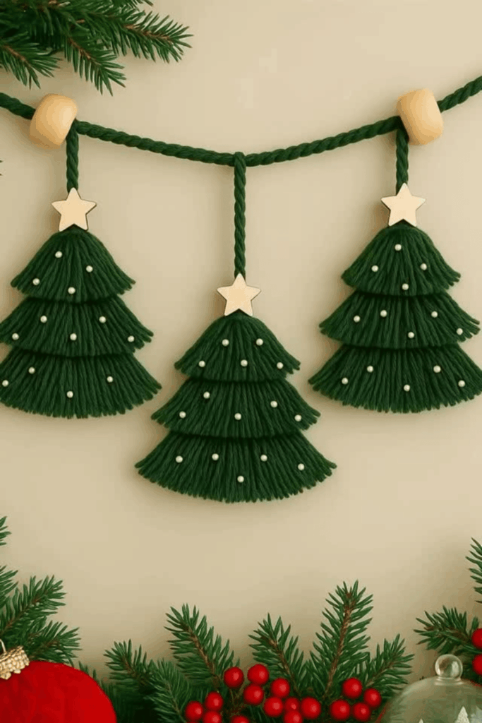 18. String a Yarn Tree Garland for a Handmade Cozy Holiday Vibe