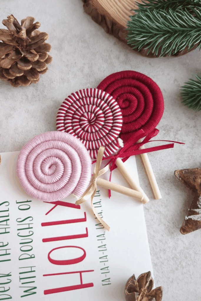 20. Make Candy Cane Inspired Lollipop Ornaments for Whimsical Tree Decor