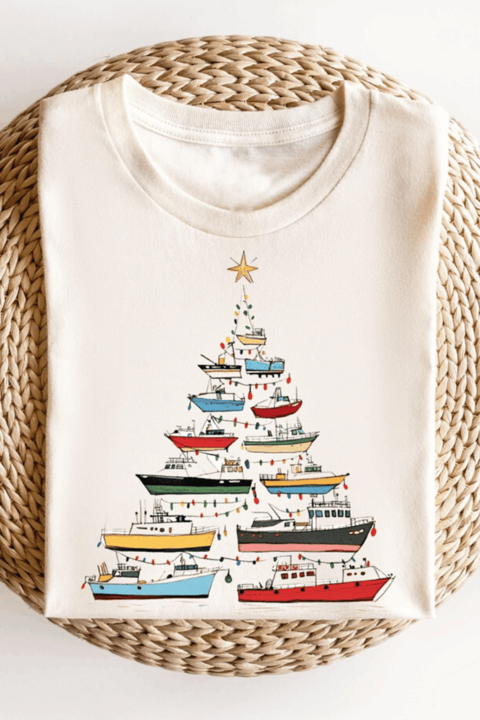 Holiday tees designed with everything from fun phrases to simple trees or Christmas wreaths are a perennial favorite.