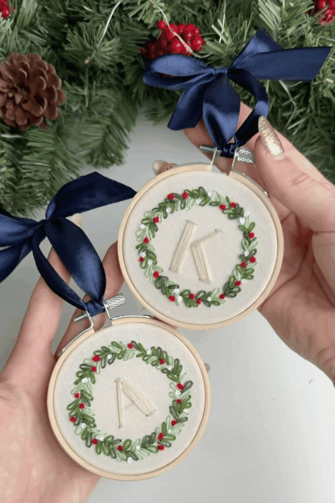 26. Embroider Monogram Hoop Ornaments for Personalized Christmas Gifts