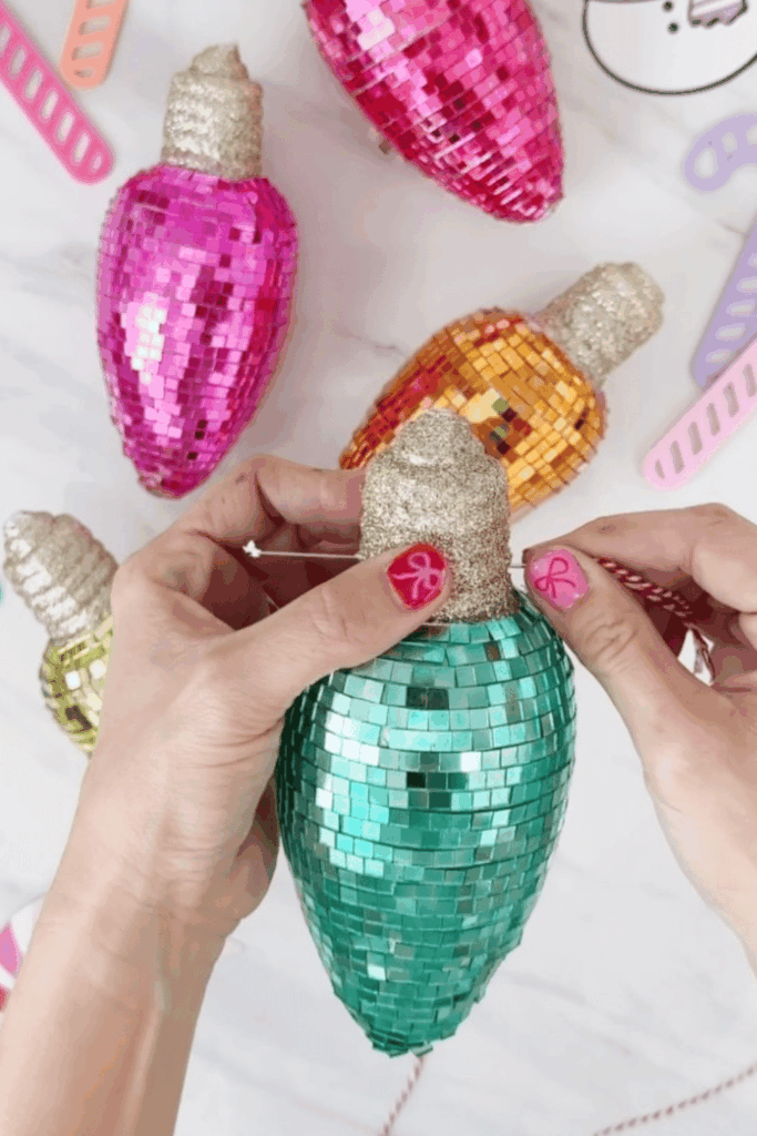29. Make Disco Style Light Bulb Ornaments for a Fun, Retro Christmas Twist
