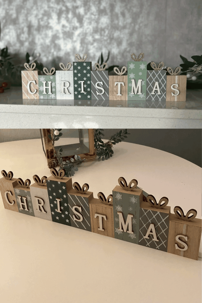 31. Create a Wooden “Christmas” Sign That Doubles as Rustic Festive Decor