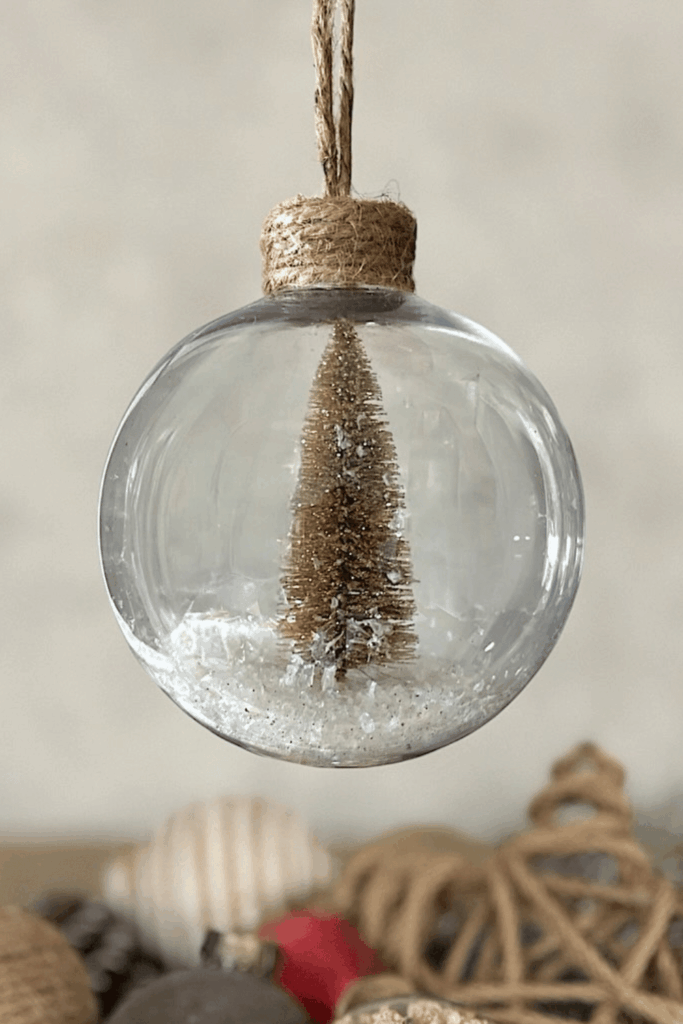 32. Craft Clear Baubles with Mini Trees Inside for a Magical Winter Scene