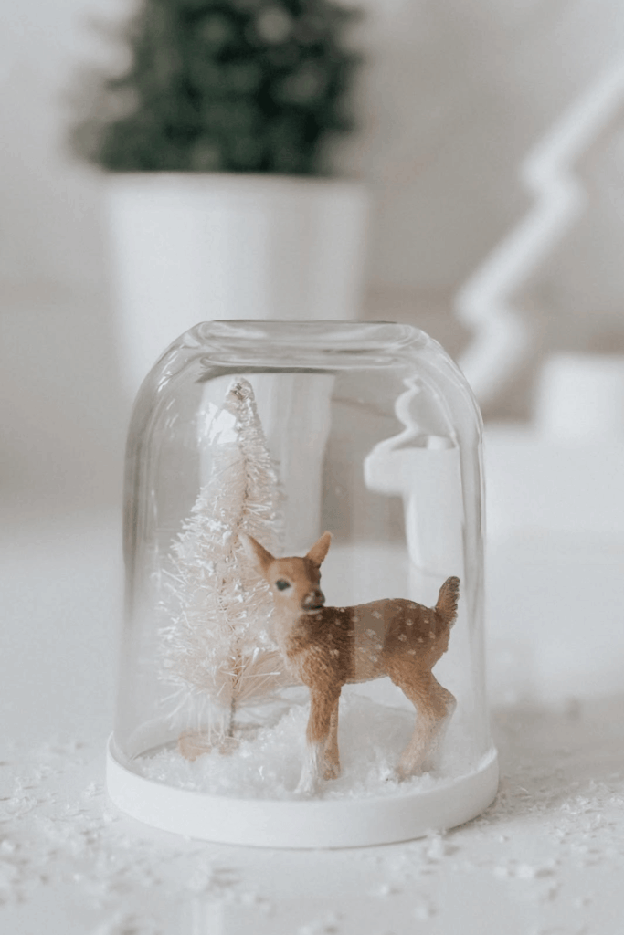 33. Make Snow Globe Jars with Woodland Animals for a Magical Touch