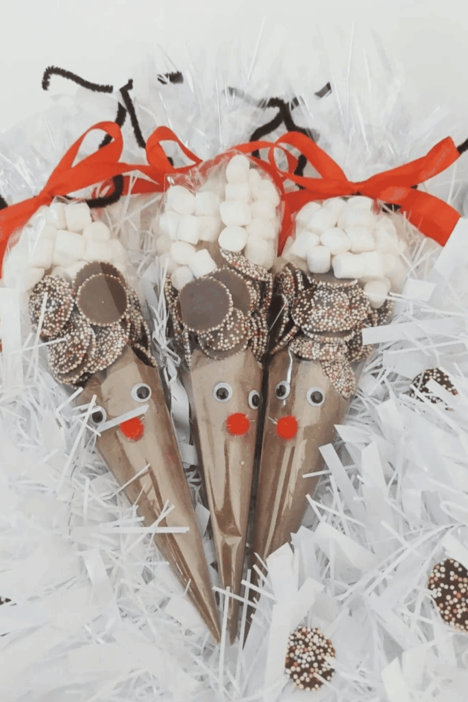 36. Package Reindeer Hot Chocolate Cones… A Fun, Easy Gift for Kids and Neighbors