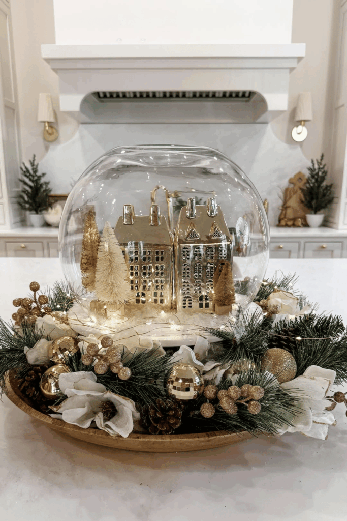 37. Design a Mini Christmas Village in a Glass Bowl… Stunning Table Centerpiece Idea
