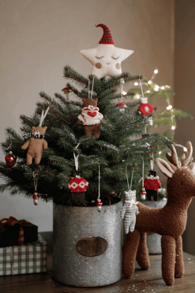 39. Decorate a Mini Christmas Tree with Handmade Ornaments and Rustic Charm