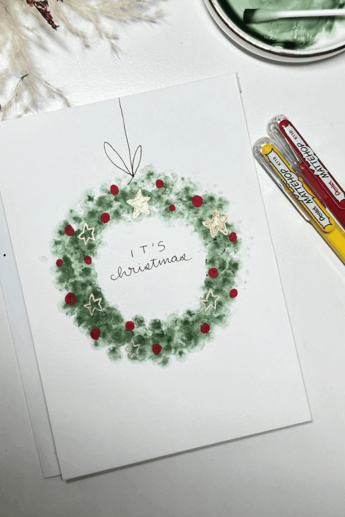 46. Paint Simple Christmas Wreath Holiday Cards That Feels Extra Special