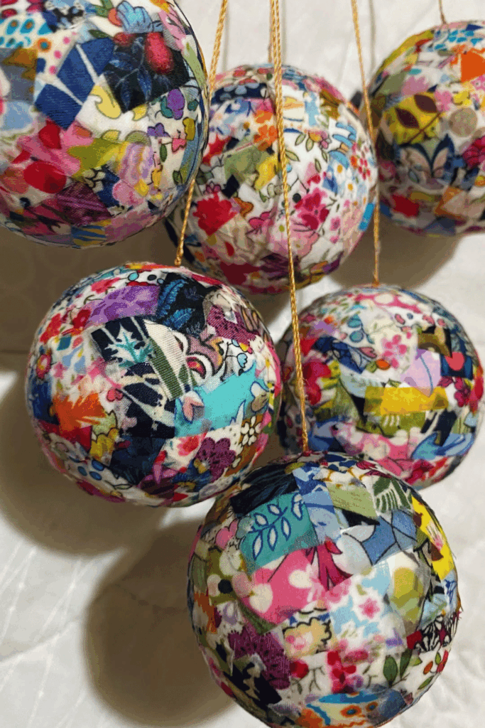 47. Wrap Colorful Fabric Scrap Baubles with a Fun Twist