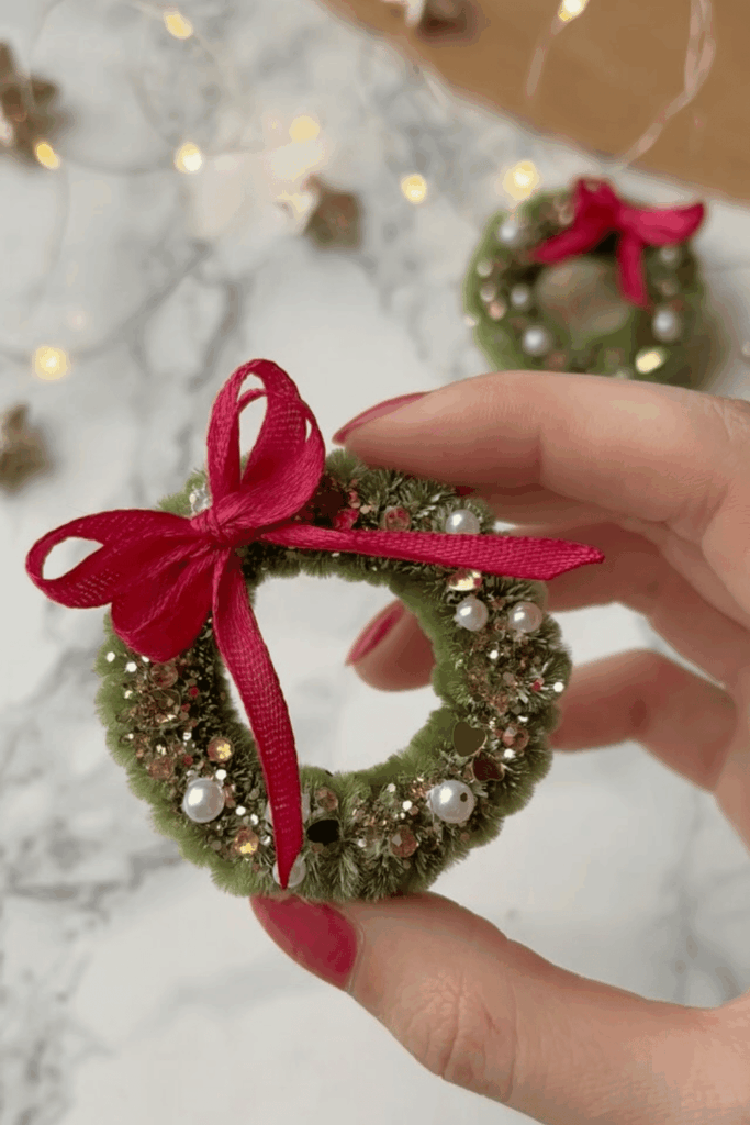 49. Mini Beaded Christmas Wreath Ornament to Gift or Sell