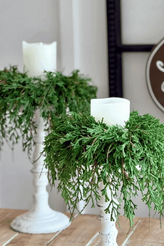5. Dress Up Candle Holders with Greenery for Easy Christmas Home Decor