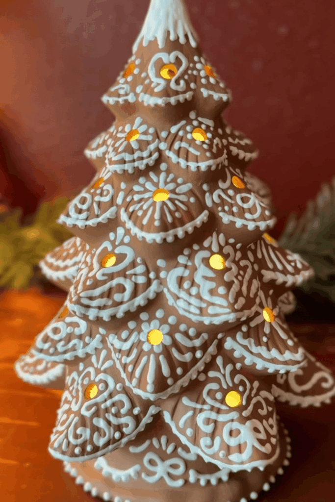 6. DIY Clay Gingerbread Tree Centerpiece that Emits a Beautiful Festive Glow