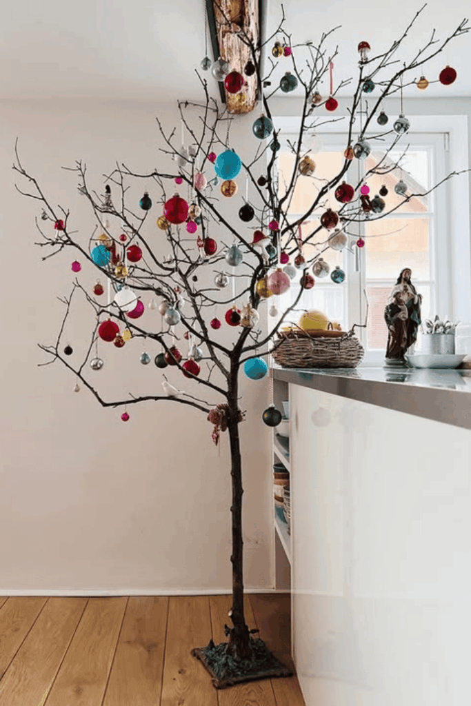 Made from a foraged birch branch and a scattering of colourful baubles, this scandi-inspired twig tree shows that alternative Christmas trees don’t have to be complicated to be creative.