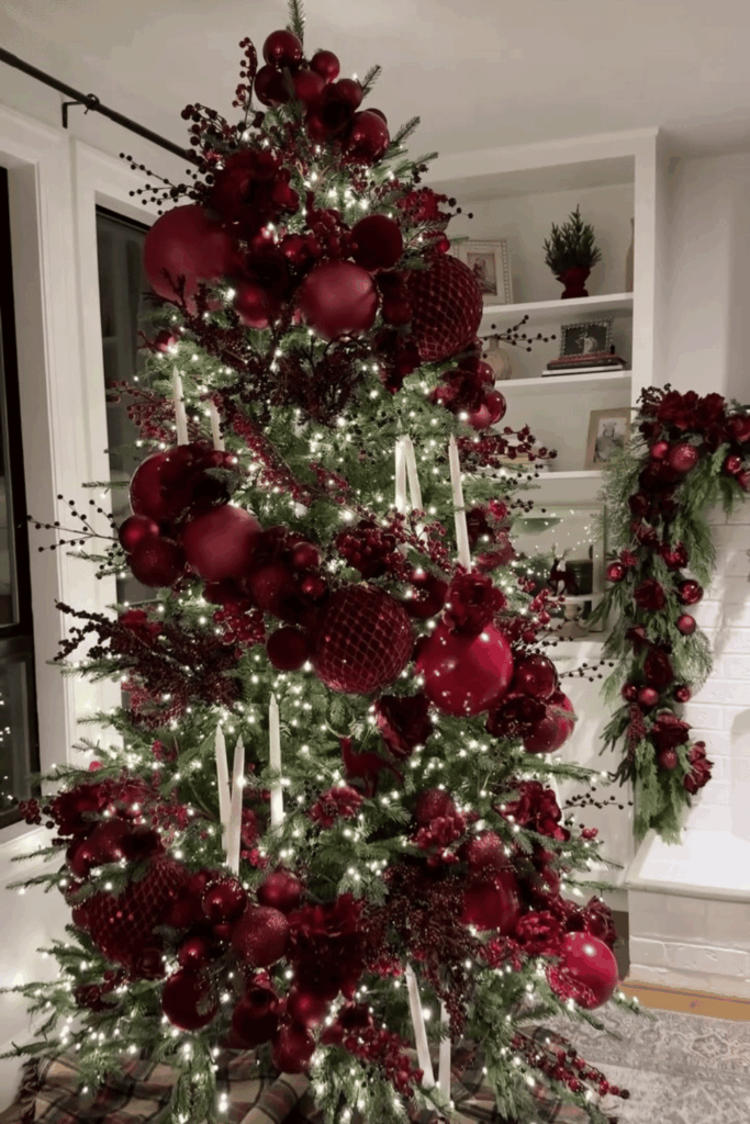 If you’re a decorator who isn’t afraid of being bold, a red-on-red Christmas tree is sure to make a statement.