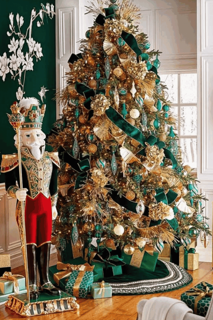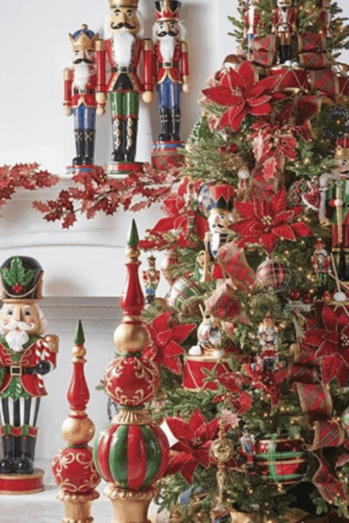 Santa tree topper and nutcracker details take it over the top with that perfect dose of childhood wonder and on trend for 2025.