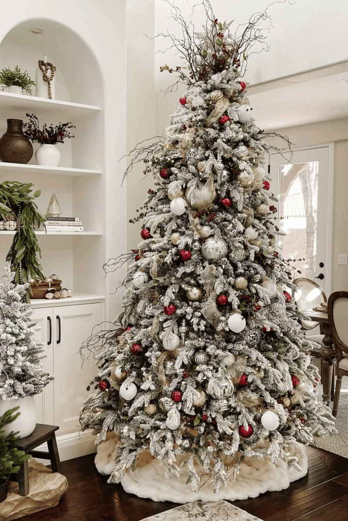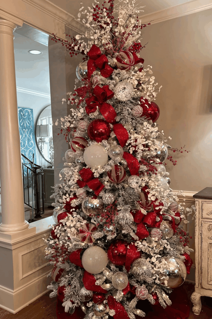 Blend Cool Sophistication with a Red, White and Silver Christmas Tree