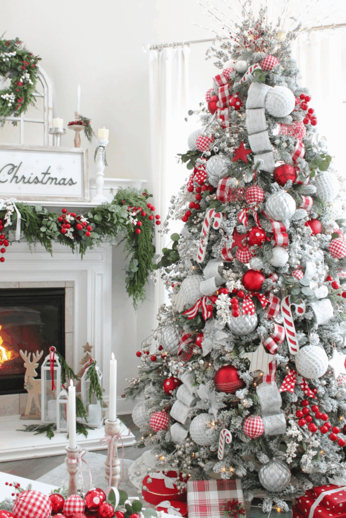 Plaid & Candy Cane Details for a Cozy Red Tree