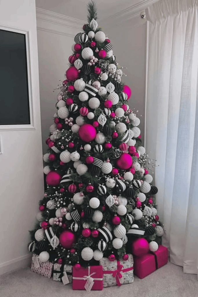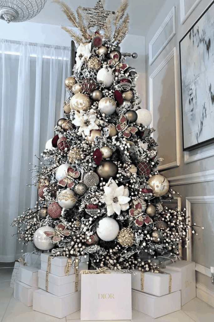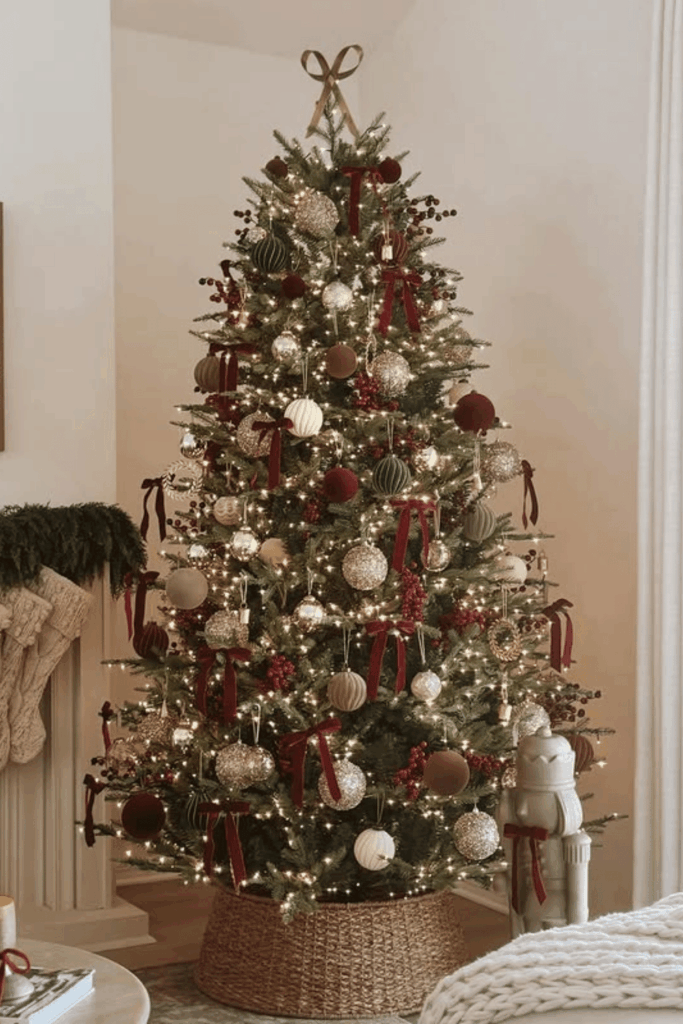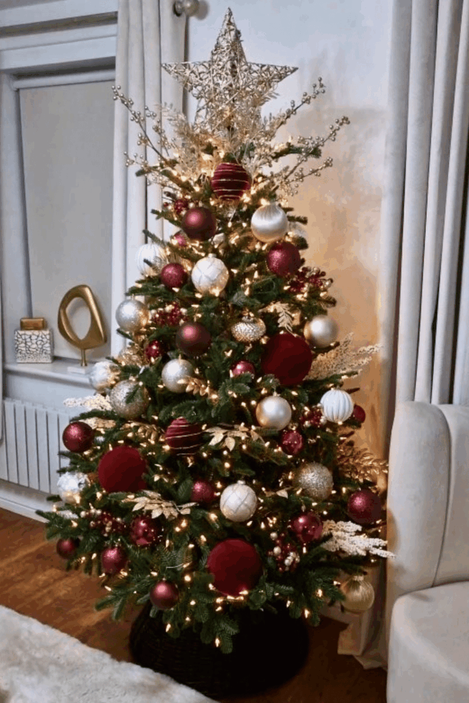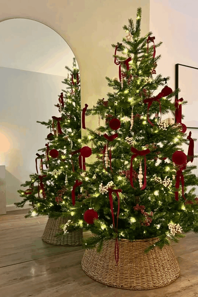 If there’s one color taking center stage this Christmas, it’s rich, romantic burgundy. It’s all about richness and drama for 2025, and these trees know exactly how to get it. Velvet textures, glossy baubles and a hint of broody luxury that’s both timeless and totally on trend.