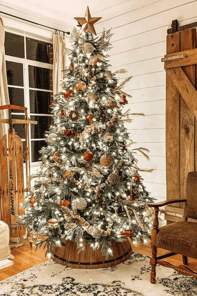 Straight out of a 1950s Christmas movie, this cozy cottage style tree proves that sometimes simple and classic is all it takes to capture the holiday spirit.