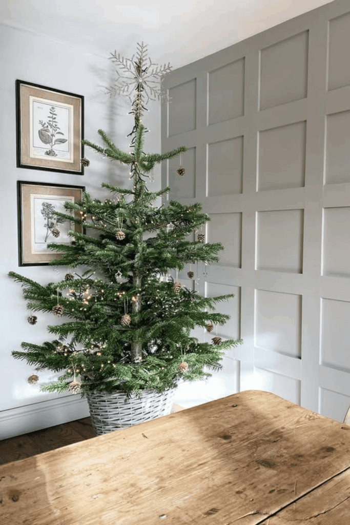 Sparse branches, neutral hues and natural textures make this Scandinavian-inspired tree as chic as they come. You can easily add a few handmade ornaments or some wood accents for a touch of hygge.