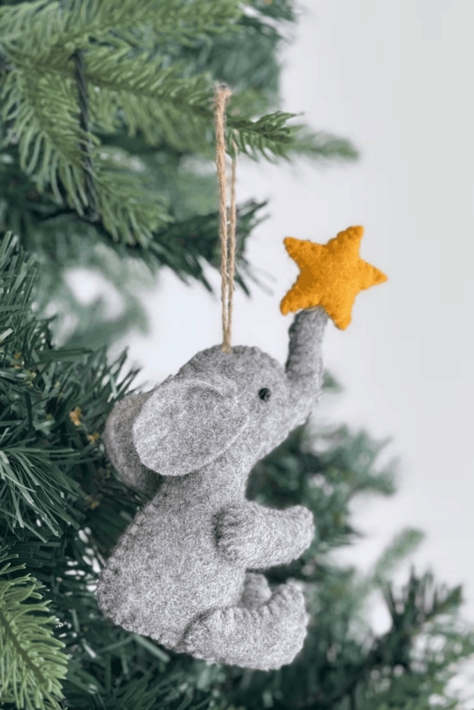 This little felt elephant with a star on the end of his trunk would make such a cute, playful addition to the tree.