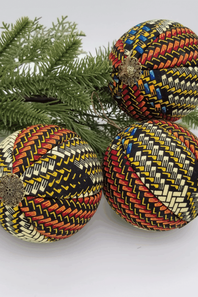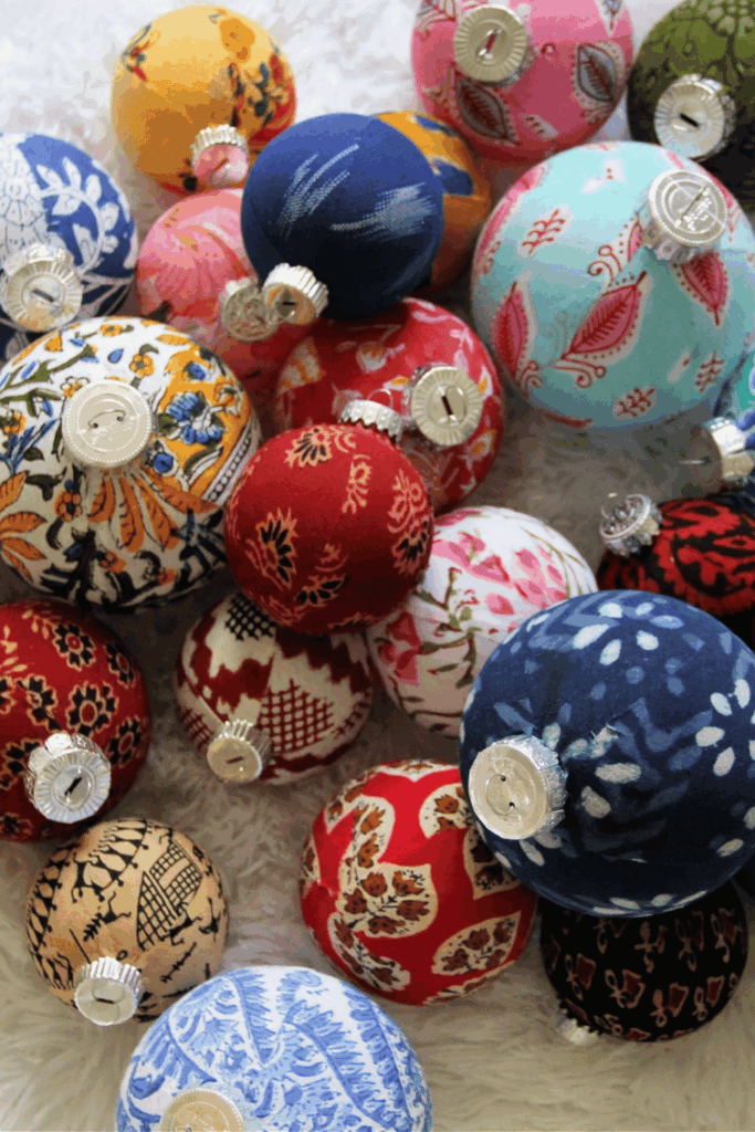 Patterned, cheerful and festive, these cloth-lined baubles are a homely alternative to traditional ornaments.