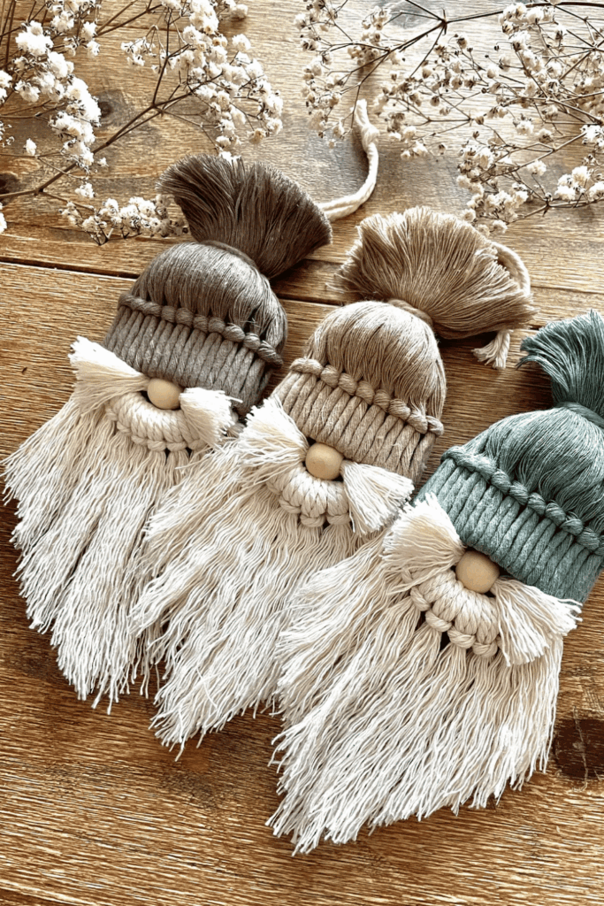 Sporting white beards and scruffy red hats, these little felt Santas are great for cozy, comfortable Christmas vibes.