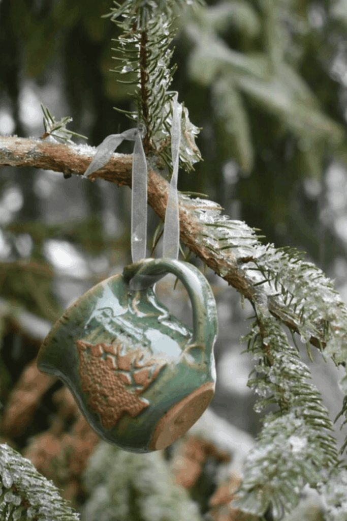 Isn’t this little pottery mug just the cutest? With a rustic glaze and simple little details, these would be perfect for adding some personality and charm to the tree.