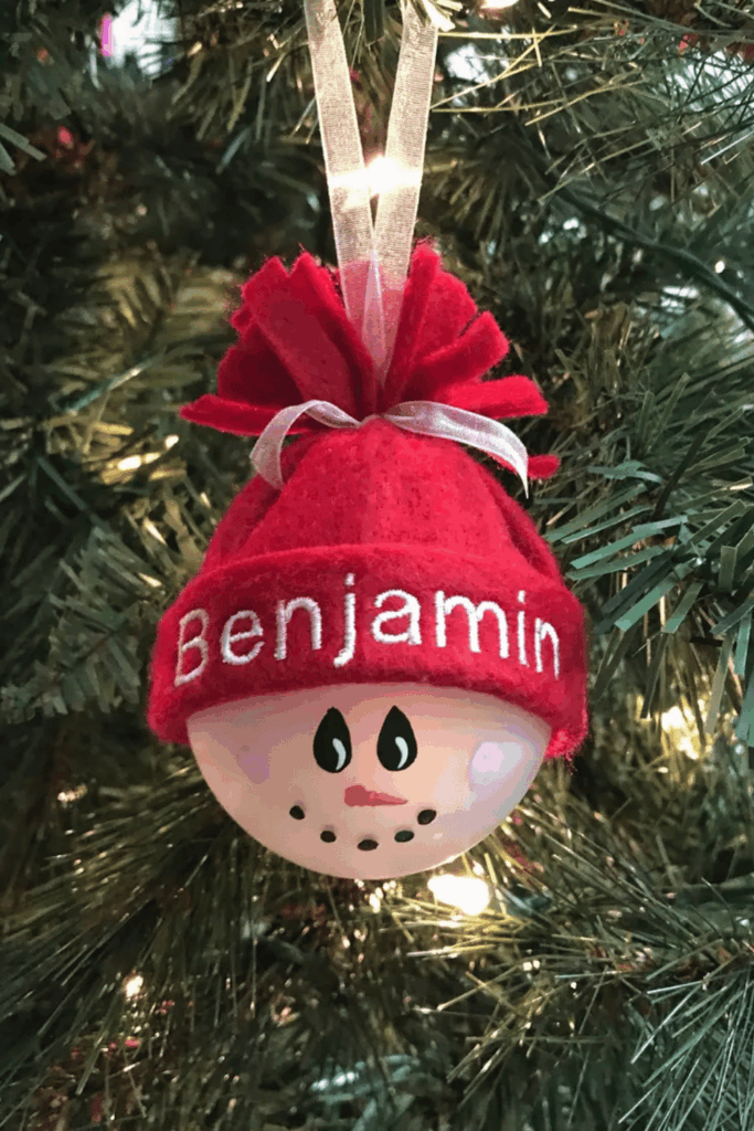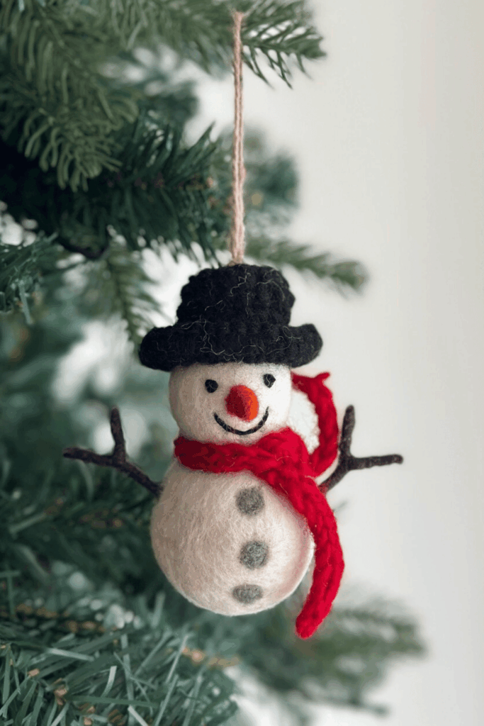 The fuzzy snowman dressed in a cute scarf is adorable and a great addition to the tree.