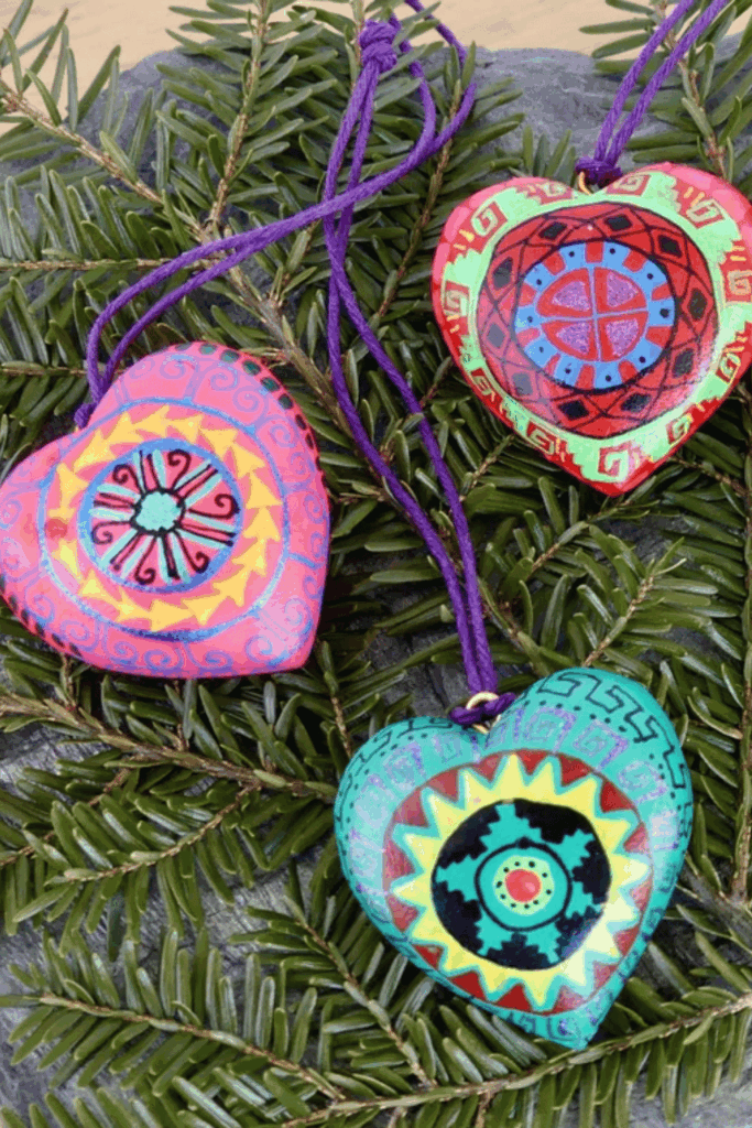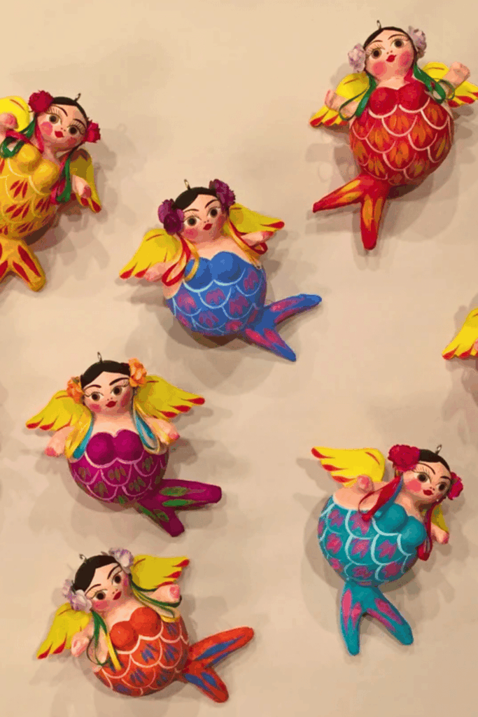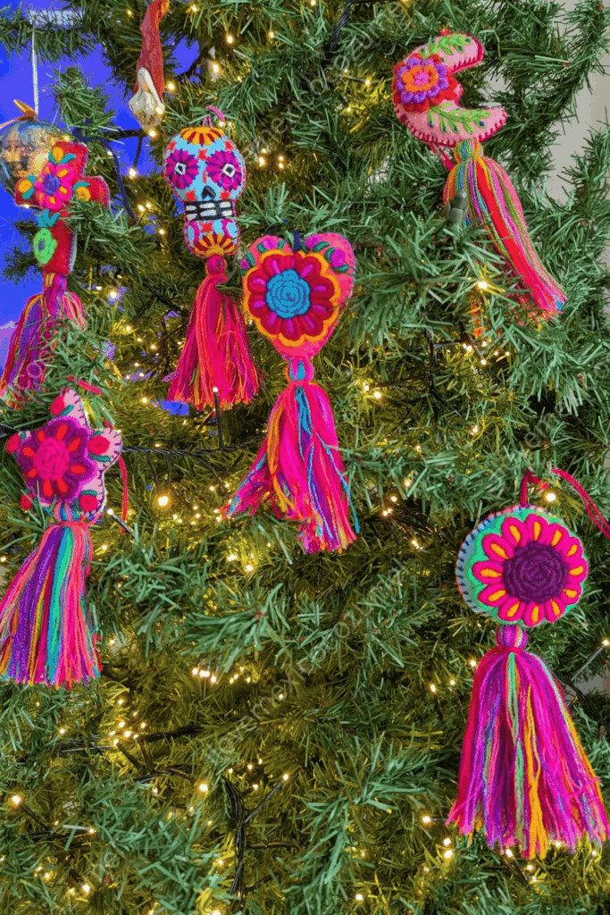 Colorful and embroidered with flowers and bright patterns, these ornaments are a Mexican take on folk art.
