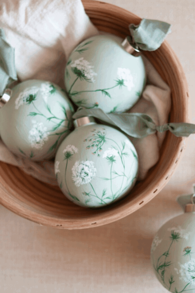 These delicate, hand-painted floral baubles add elegance to the Christmas tree.